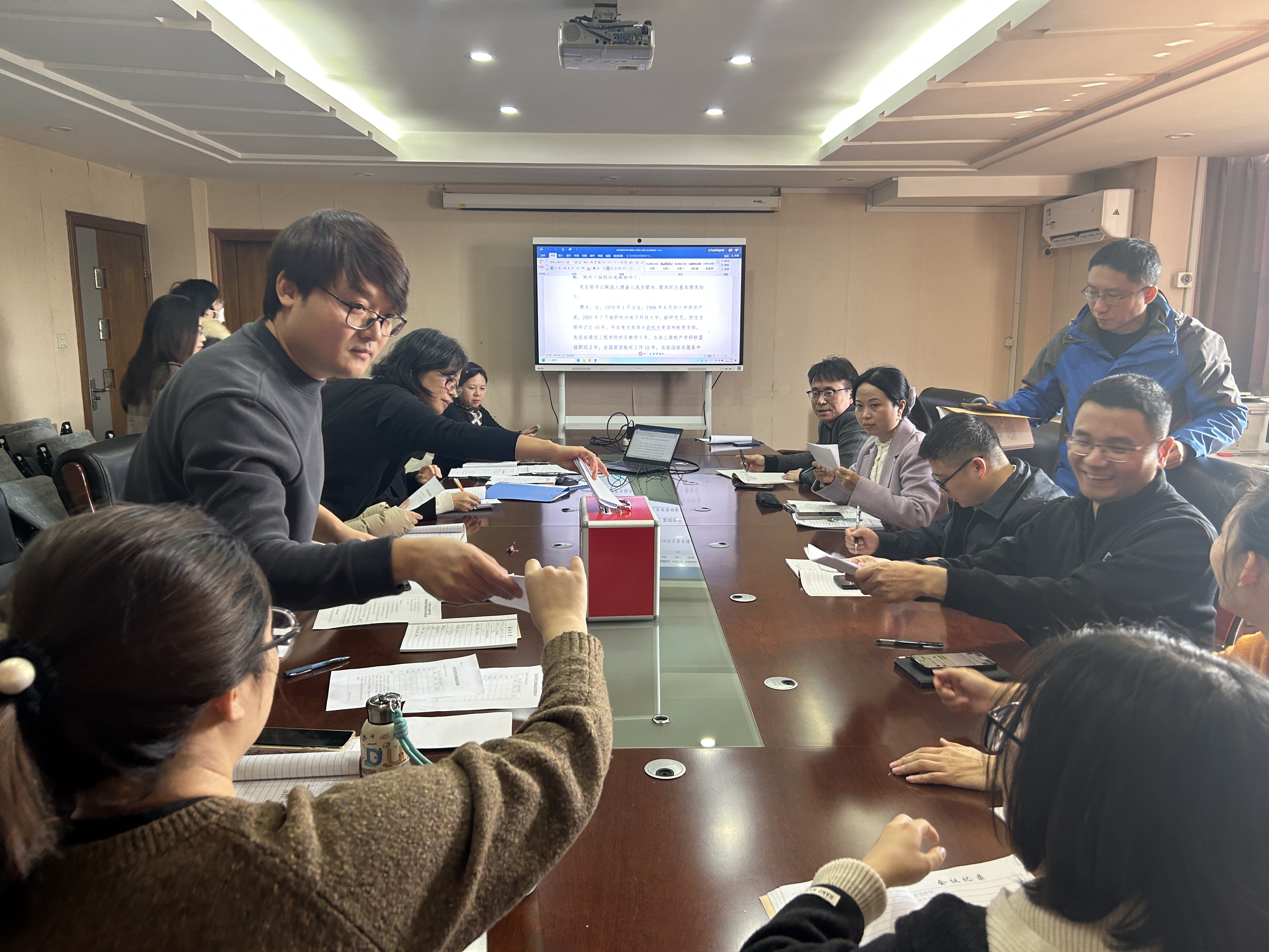 2025年11月19日上午,国资实验党支部在下沙校区行政楼八楼会议室召开全体党员大会,举行“学习党的二十届四中全会精神”专题党课并顺利完成支部委员会换届选举。支部全体党员参加会议,会议由樊冰同志主持。